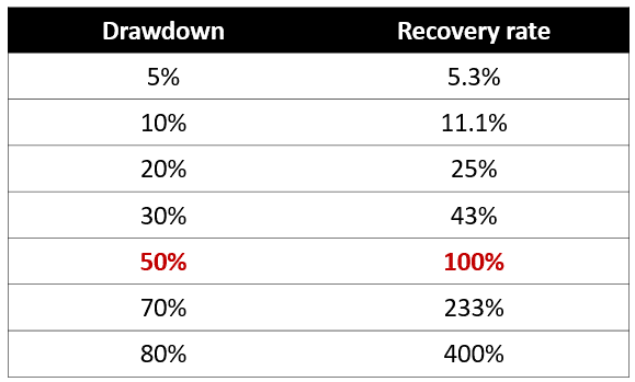 Wydostanie się z obsunięcia kapitału jest emocjonalnym wyzwaniem i większość traderów stara się mu sprostać przez zwiększenie wielkości otwierancyh pozycji. Podczas drawdownu traderzy są zwykle bardziej emocjonalni, a cierpią na tym ich tradingowe decyzje. Połączenie tego ze zwiększonym ryzykiem zawsze kończy się katastrofą. Podczas obsuwy kapitału twoim priorytetem #1 powinno być odzyskanie pewności, co do swoich umiejętności i zachowanie kapitału emocjonalnego na najwyższym możliwym poziomie.