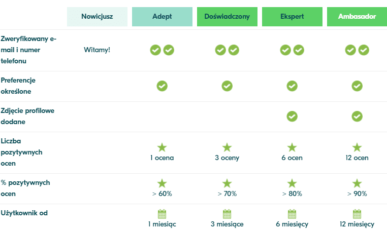 Korzystając ze wspólnych przejażdżek w BlaBlaCar, wybierasz podróż z członkiem zaufanej społeczności użytkowników. Każdy użytkownik ma przypisany mu poziom doświadczenia, który zwiększa się w zależności od intensywności i czasu trwania jego aktywności na stronie. Poziom doświadczenia jest cennym przewodnikiem przy wyborze idealnego towarzysza podróży. Istnieje pięć poziomów doświadczenia: