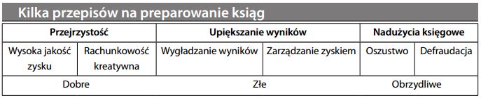 Można twierdzić, że większość jednostek sprawozdawczych trochę „preparuje”. Pozwala na to pewna dowolność niektórych aspektów rachunkowości, tolerująca subiektywną interpretację rzetelnej prezentacji. Jak to bywa w kuchni, szczypta przypraw zaostrza smak dania. Jeżeli jednak z nimi przesadzić – zwłaszcza gdy składniki są podrobione – można potrawę zepsuć, a w skrajnych przypadkach doprowadzić do zatrucia.