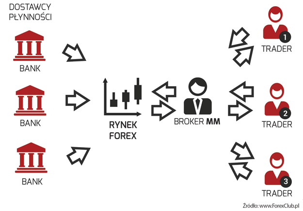 Do niedawna Market Maker (w skrócie MM) był najpopularniejszym modelem rynkowym. Jego popularność wynikała ze stosunkowo niskich kosztów stworzenia takiej działalności, a także z prostoty obsługi. Broker działający w modelu MM jest symulacją prawdziwego rynku, na którym inwestor, otwierając pozycję na platformie, zawiera transakcję z brokerem, który działa jako animator rynku.