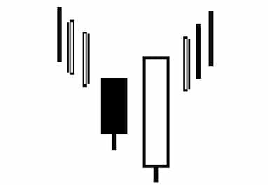 Objęcie Hossy – Formacja odwrócenia trendu spadkowego, składająca się z dwóch świec. W silnym trendzie spadkowym tworzy się niezbyt długa czarna świeca. Po niej najczęściej luką otwiera się kolejna świeca, co może sugerować przyspieszenie trendu. W tym jednak momencie następuje odbicie. Zamknięcie drugiej świecy następuje powyżej otwarcia pierwszej świecy. Pierwsza mieści się w całości w korpusie drugiej świecy, można powiedzieć że jest nią objęta. Potwierdzeniem formacji są transakcje z ceną powyżej korpusu drugiej świecy.