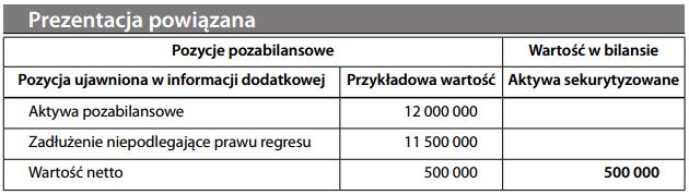 Wykazywanie w bilansie danego składnika aktywów po potrąceniu związanego z nim źródła finansowania (w odróż- nieniu od normalnie stosowanej zasady rachunkowości, zgodnie z którą aktywa i zobowiązania nie powinny być ze sobą kompensowane). Kompensata aktywów i związanego z nimi źródła finansowania jest jednym ze standardów rachunkowości (np. w Wielkiej Brytanii, Standard Rachunkowości Finansowej nr 5), które można stosować w przypadku aktywów sekurytyzowanych. Typowy przykład wyglądać może następująco: