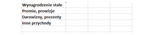 Kategorie pokazane na powyższym zdjęciu powinny być wystarczające na początek. Oczywiście, jeśli jesteś uczniem, możesz wpisać stałą pensję zamiast kategorii, np. transfer od rodziców. Możesz zmienić kategorie bonusów i prowizji na pracę dorywczą oraz darowizny i prezenty na kieszonkowe od babci. Ważne jest, aby na początku nie było ich zbyt wiele. 3-5 powinno wystarczyć.