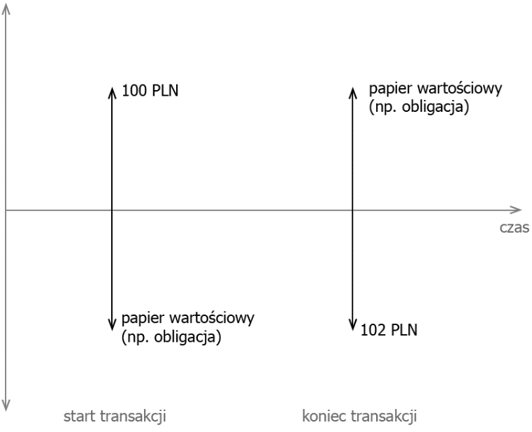 Jeśli z prawnego punktu widzenia jest to transakcja sprzedaży i odkupu, faktycznie stanowi formę zabezpieczonego kredytu: sprzedawca występuje w roli dłużnika, a kupujący – wierzyciela. W chwili zapadalności kontraktu nabywca „kupuje” instrument bazowy (po raz drugi), spłacając dług. W międzyczasie kredytodawca pozostaje w posiadaniu zbywalnego papieru wartościowego, jednak bez konieczności zmagania się z biurokracją i ryzykiem właściwymi dla świata zabezpieczeń na majątku.