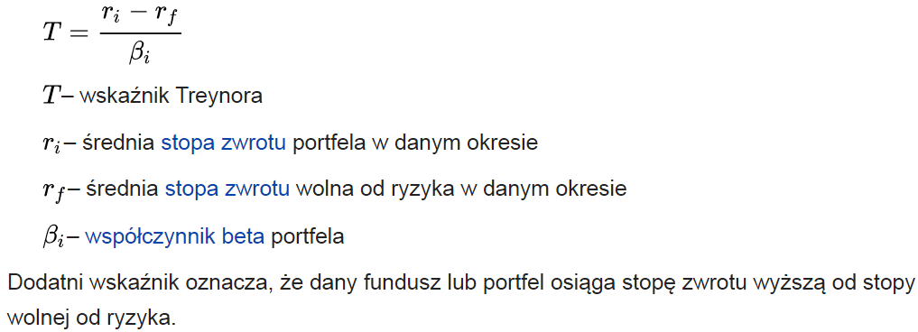 Interpretacja wskaźnika Treynora jest analogiczna do wskaźnika Sharpa. Wartość wskaźnika odpowiada premii za ryzyko, jaką inwestor otrzymuje za jednostkę ryzyka mierzonego betą. Im wyższa wartość wskaźnika, tym dany portfel jest atrakcyjniej wyceniany. Wskaźnik Treynora wyższy od portfela rynkowego, oznacza że portfel znajduje się powyżej linii SML (jest niedoszacowany) i powinien być zakupiony przez inwestora. Analogicznie, portfel o wskaźniku Treynora niższym od rynkowego, to portfel przeszacowany, leżący poniżej SML, który powinien zostać przez inwestora sprzedany.